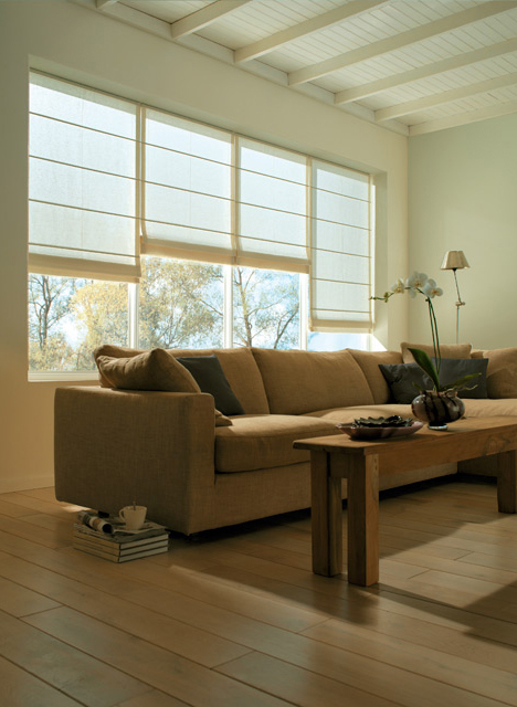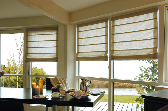 Raffrollos regen zum fantasievollen Gestalten ein. Formgebungen und Stoffarten lassen keine Wünsche offen, ob schlicht, stilvoll oder elegant.